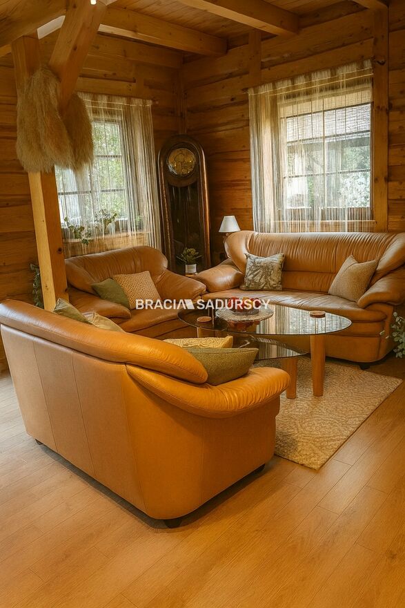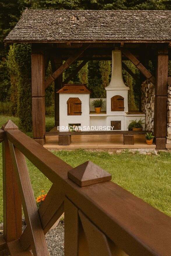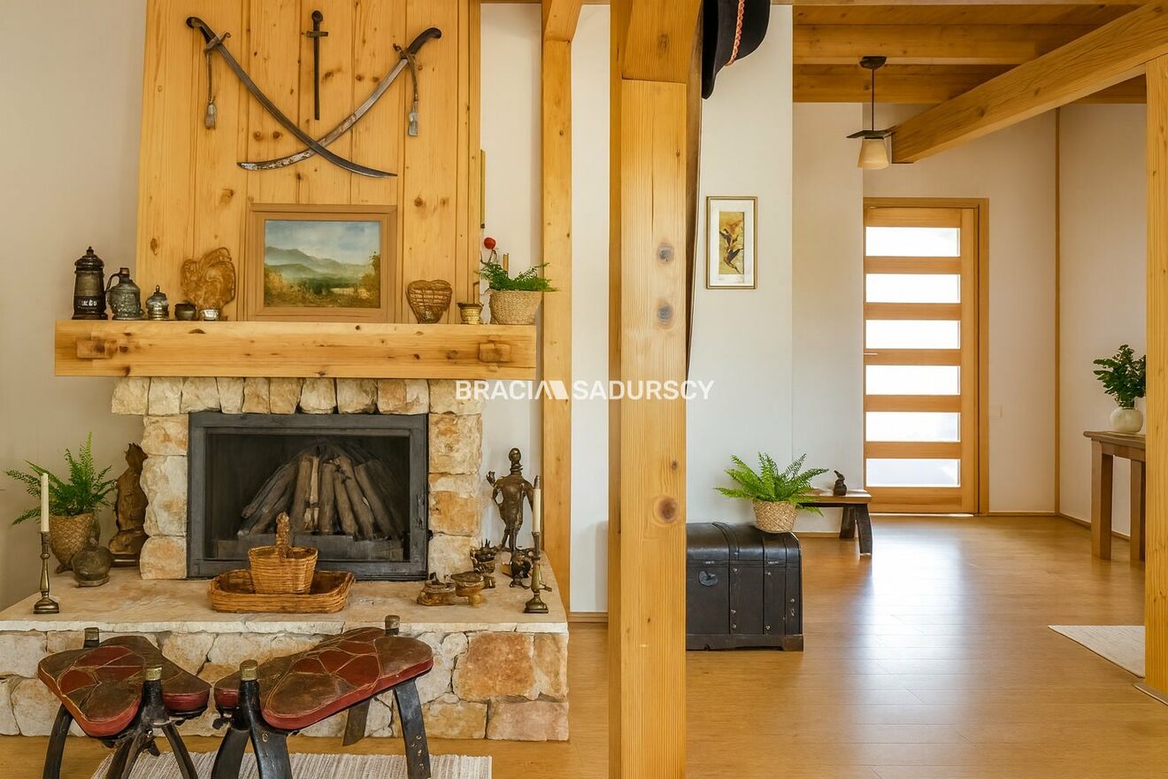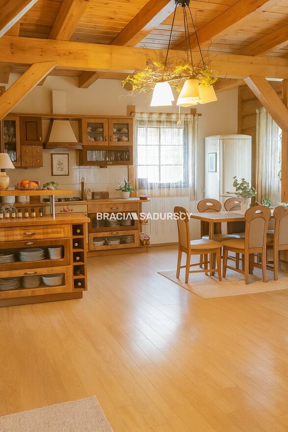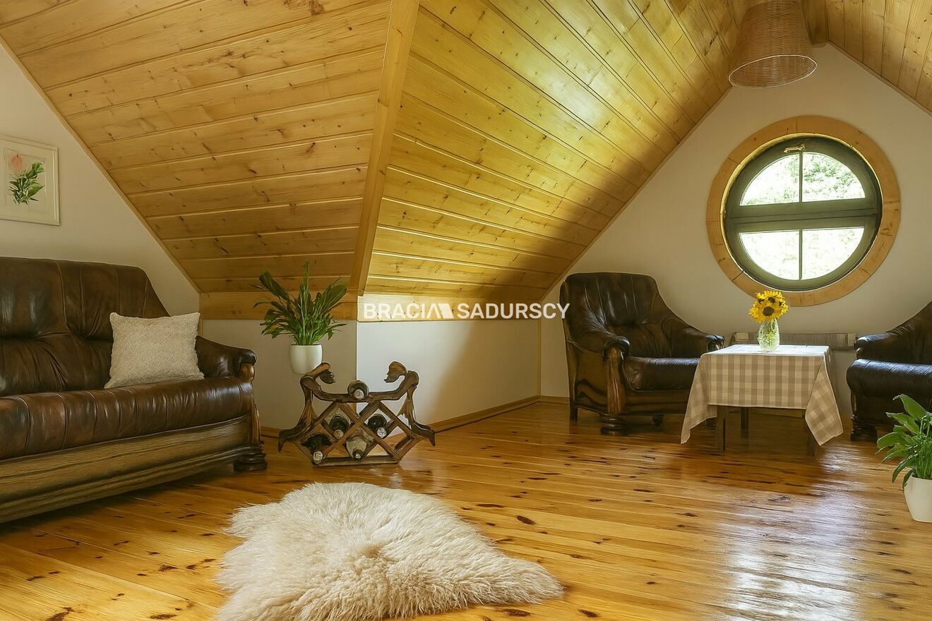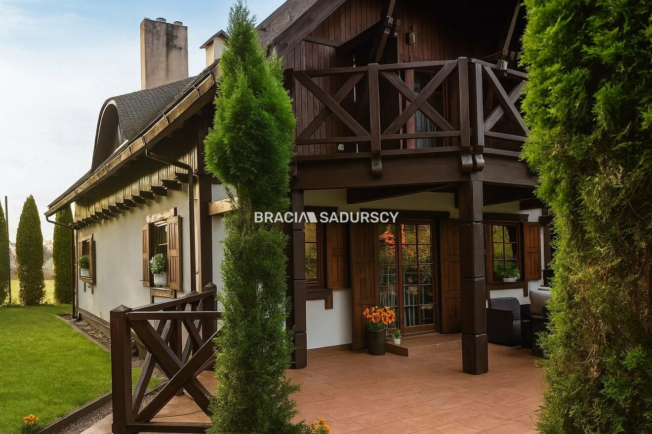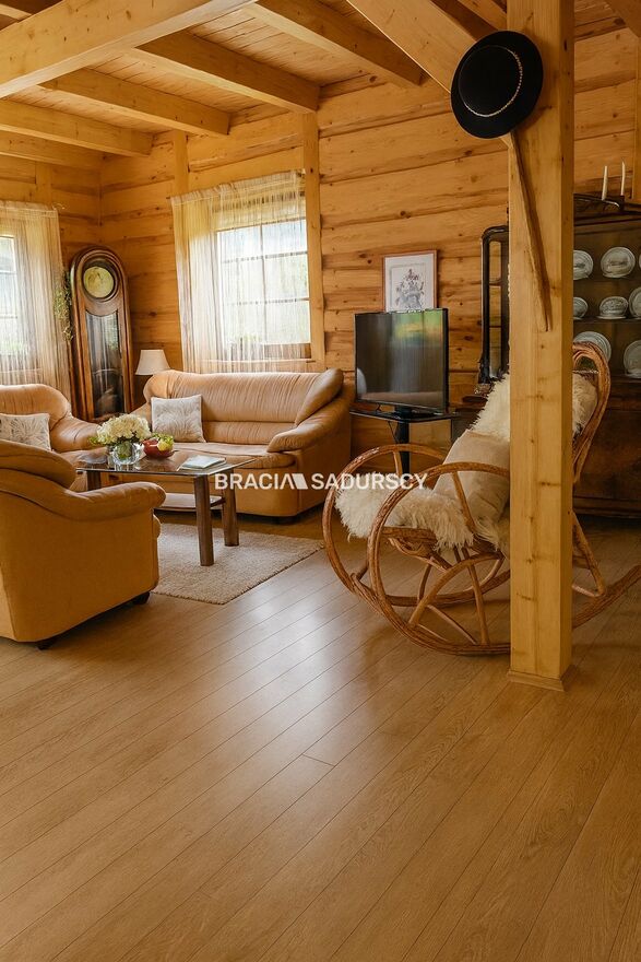 Na sprzedaż niezwykła posiadłość o charakterze rancza, położona na 33-arowej działce z własnym lasem , stworzona dla osób ceniących prywatność, przestrzeń i niepowtarzalny klimat natury. Całość urządzona z dbałością o detale, w spójnym, eleganckim stylu opartym na naturalnym drewnie oraz dachach krytych wiórem osikowym .